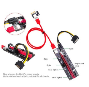Удлинитель рэйзер PCI-Express PCI-e 1x->16x соединение кабелем USB 3.0 60см, питание molex 5.25/SATA/AUX 6PIN 12V